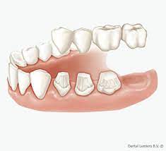 Bij een vrij-eindigende brug bevinden de pijlers zich aan één zijde van de ontbrekende tand of kies.
